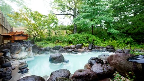 「乳白色の濁り湯に癒やされる、森の中の北欧風リゾート」