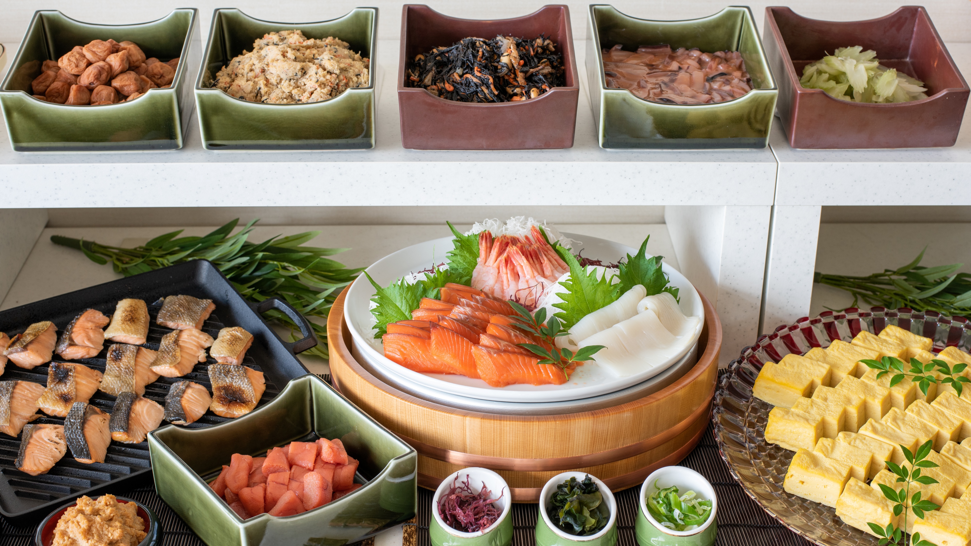 •特徴3 展望朝食ビュッフェ: 最上階から大雪山を眺めながら、地元食材たっぷりの朝食を。