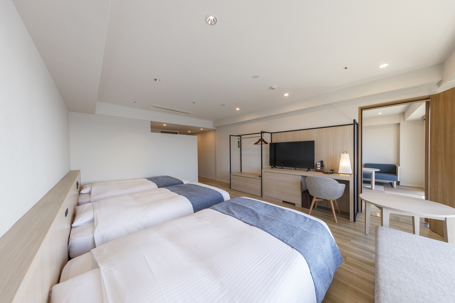 旅行の醍醐味の一つは、家族みんなでの語らいの時間ですよね。でも、寝室と団らんの場が同じだと、誰かが寝始めると、残りのメンバーは小声で話さなければならなかったり、テレビを消さなければならなかったり…。「まだ話したいけど、そろそろお開きにしないと」という雰囲気になりがちで、ちょっと寂しい気持ちになることも。
