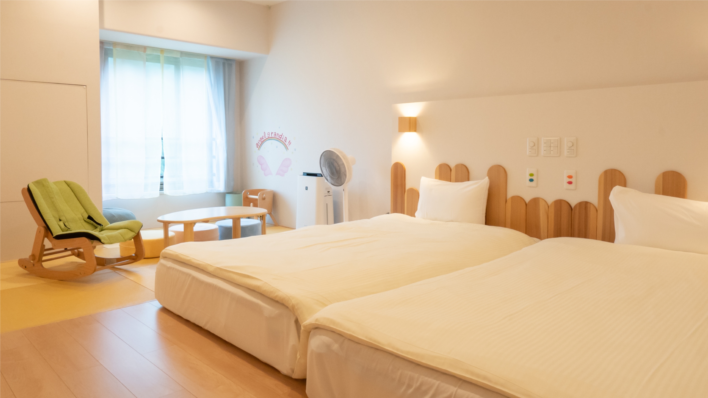 •子育て応援ルーム: 角が丸い家具やローベッドなど、安全に配慮されたお部屋で安心!