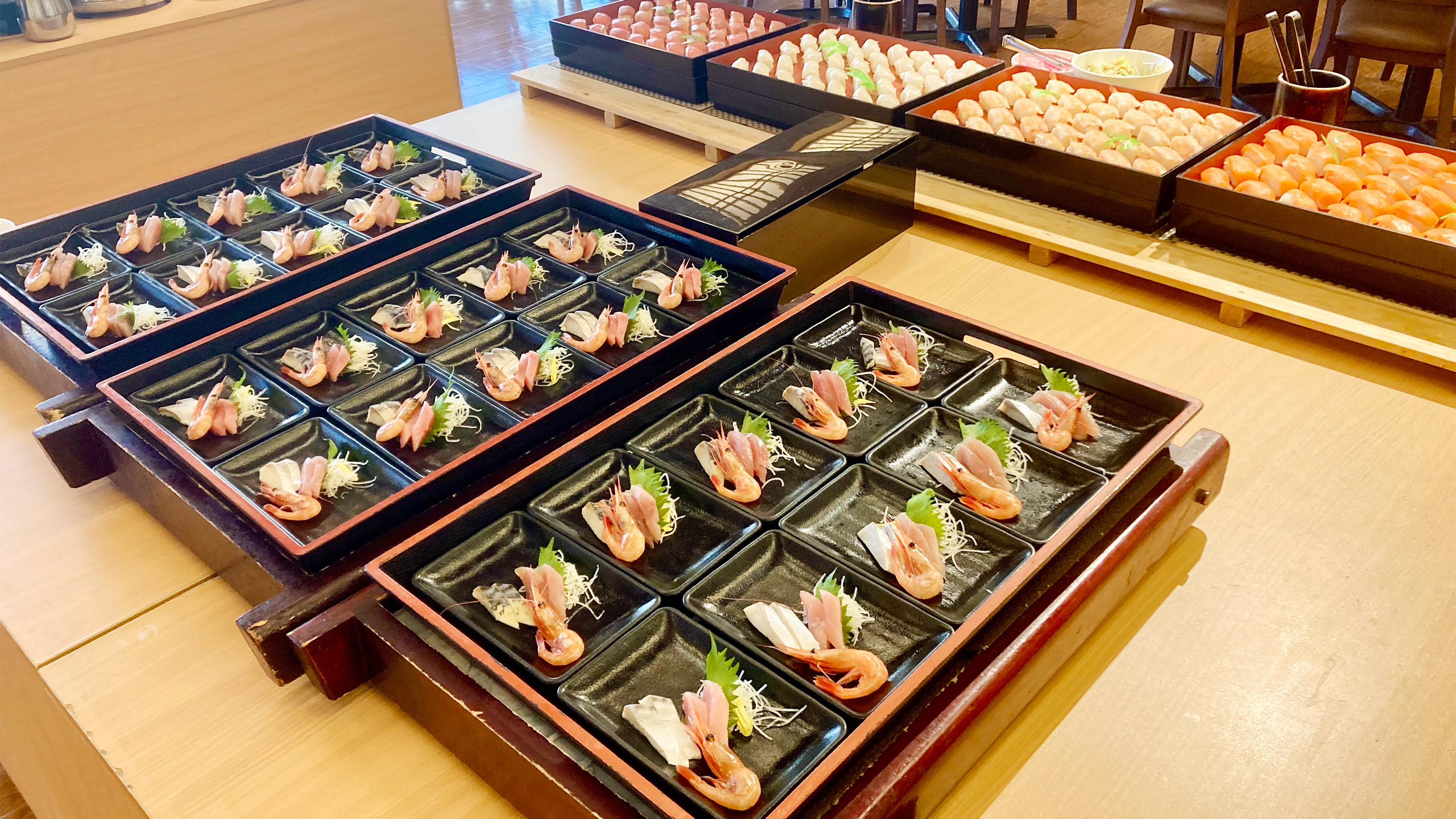 - お寿司・お刺身の充実度: 浜焼きと並んで人気なのが、新鮮なお寿司やお刺身。舟盛りが登場したり、職人が目の前で握ってくれたりするホテルは満足度が非常に高いです。